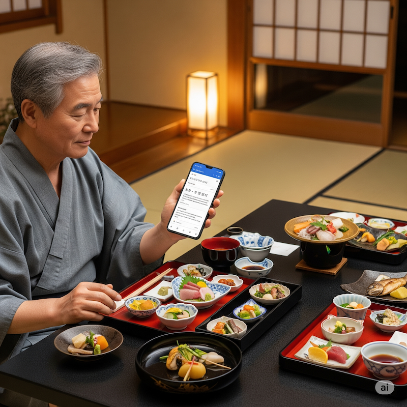 료칸에서의 품격 있는 식사 가이세키 요리 각각의 의미를 알고 먹으니 정말 달랐어요. "이 완모노는 홋카이도 바다의 맛을 담은 맑은 국이군요"라고 말했더니 료칸 여주인이 "정말 일본 문화를 깊이 이해하시는군요!"라며 감동하시더라고요.