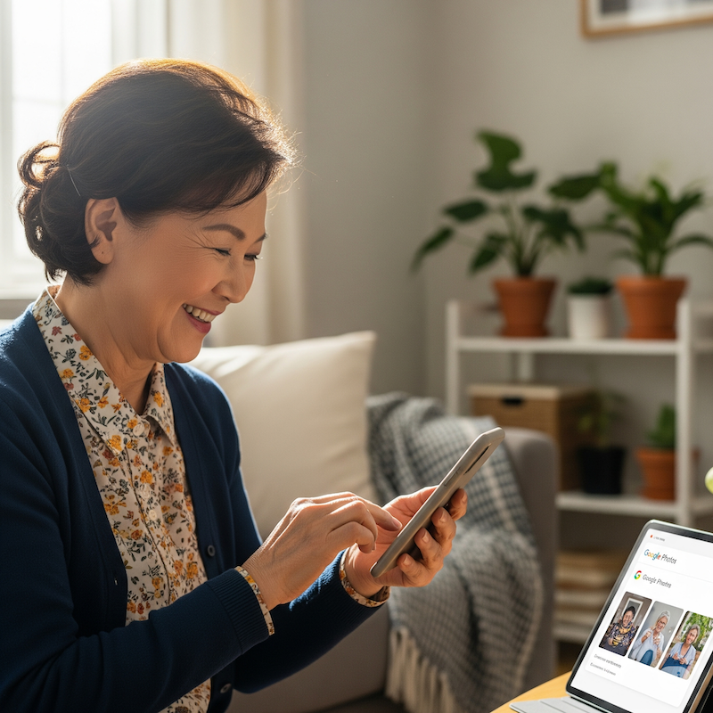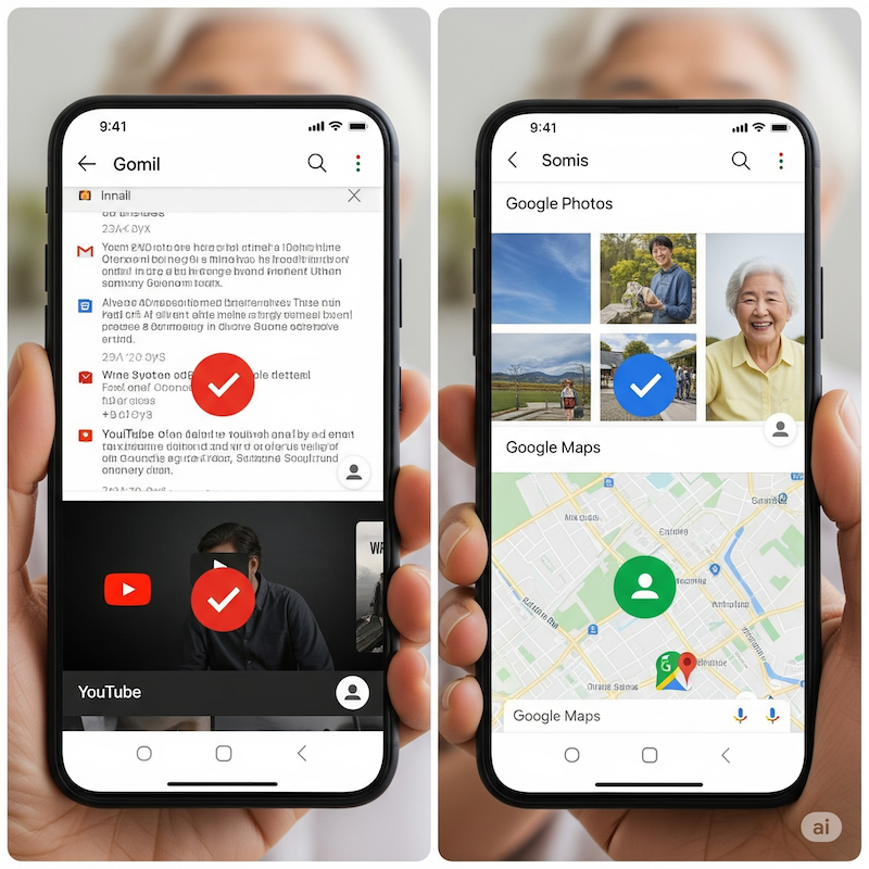 "처음엔 '내가 언제 지메일을 만들었지?' 하고 당황했어요. 하지만 이제는 지메일 덕분에 손자들과 더 많이 소통하고, 사진도 안전하게 보관하고, YouTube에서 재미있는 영상도 보고 있어요."